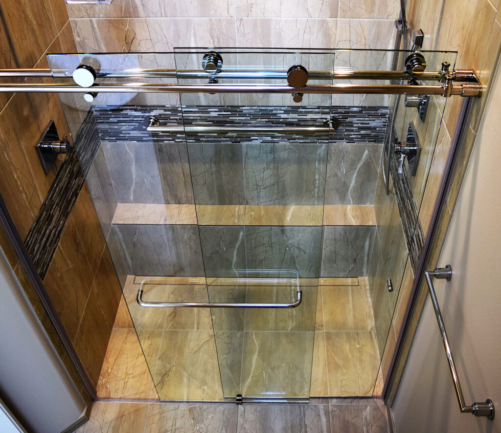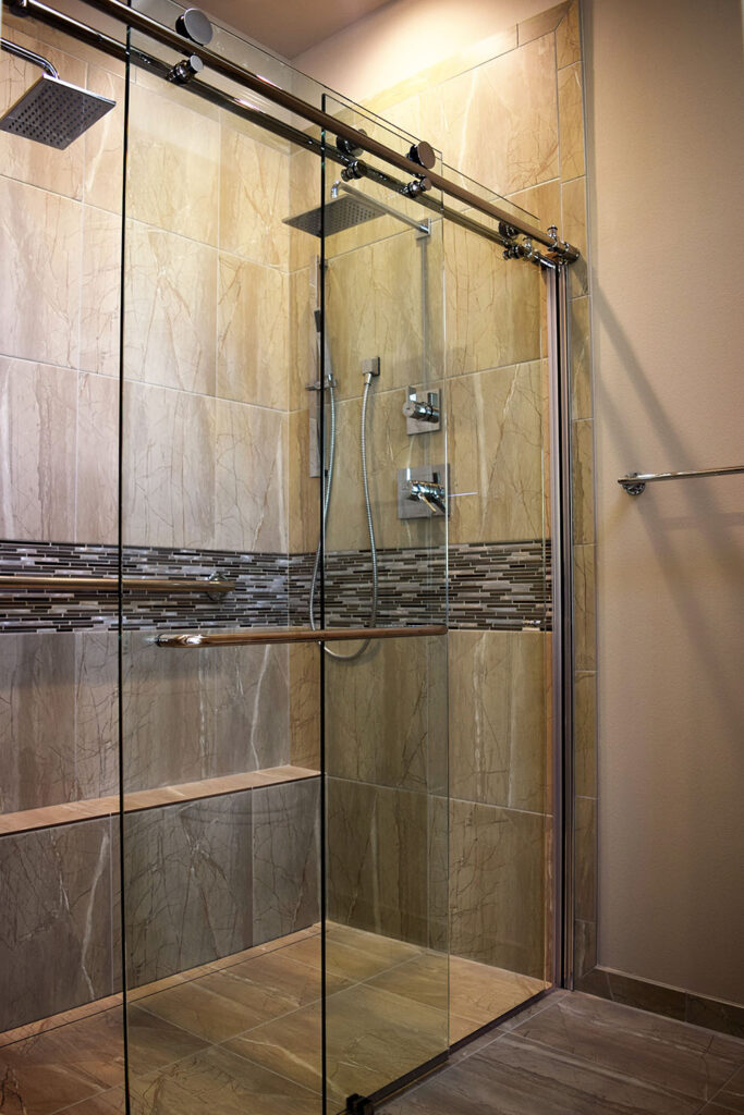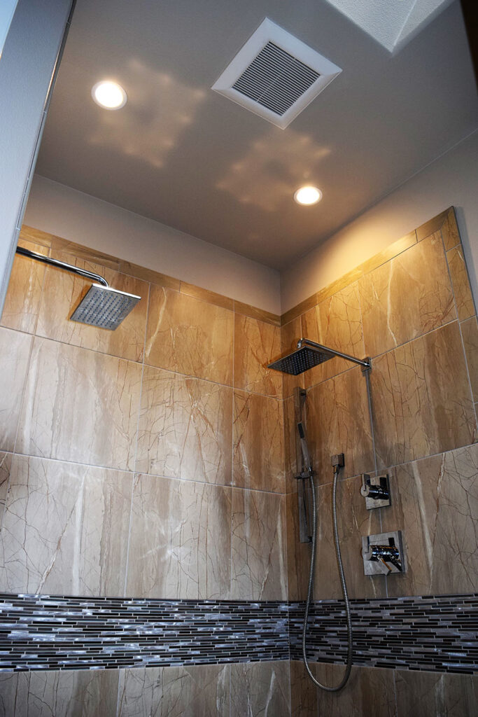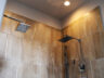 The floor framing was recessed, to allow the shower to be curbless. This makes accessibility – as well as convenience – much better.